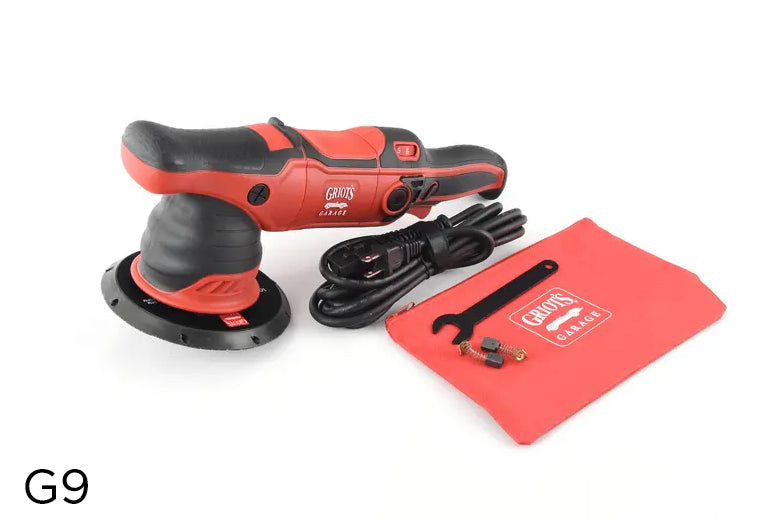 - G13 Mini Long-Throw Orbital Polisher: Offers a 44% longer throw than the G9, excellent for paint correction but less suited for wax application. Powered by an 1100-watt motor, uses 2" and 3" backing plates.